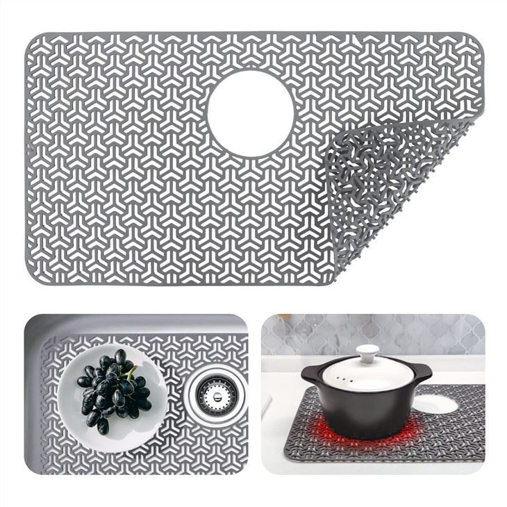 2. Resistente al calore: il silicone è resistente al calore, quindi puoi usare il tappetino del lavandino come sottopentola per proteggere i tuoi controsoffitti da pentole e padelle calde.